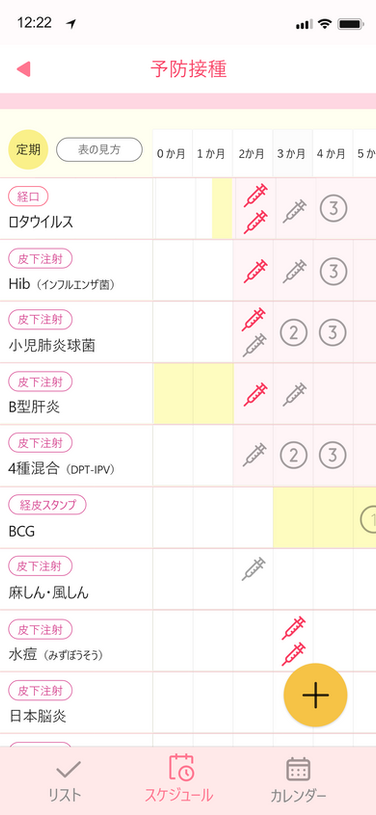 煩雑で負担の多い予防接種のスケジュール管理を、予定日と接種日に分けたリストでお手伝いします。